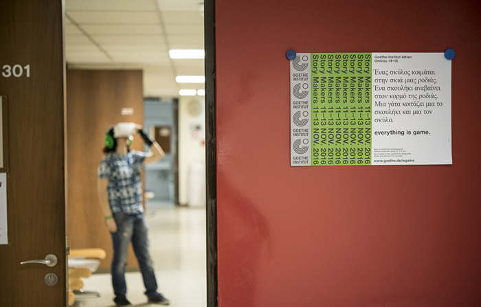 Ένα τριήμερο game jam από το Goethe-Institut Athen, εμπνευσμένο από την τέχνη της αφήγησης και την ανάγκη να δημιουργούμε και να μοιραζόμαστε ιστορίες, πραγματοποιήθηκε την Παρασκευή. Ειδικοί στη δημιουργία παιχνιδιών (video & urban games) και στην τέχνη της αφήγησης, σχεδιαστές, προγραμματιστές παιχνιδιών και όχι μόνο μοιράστηκαν τις εμπειρίες και τις γνώσεις τους σε μια σειρά διαλέξεων και διαδραστικών εργαστηρίων.