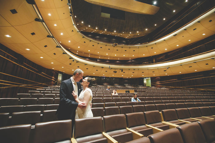 1 Η σχέση της Χριστίνας Καραϊσκάκη και του Λάμπρου Ντάσιου ξεκίνησε στην παρουσίαση του προγράμματος ’13-’14. Λίγα χρόνια μετά, την ημέρα του γάμου τους, πήραν την απόφαση «μεταξύ της εκκλησίας και της δεξίωσης να βγάλουμε τις φωτογραφίες γάμου στη Στέγη. Για εμάς ήταν το πλέον αυτονόητο. Τολμήσαμε και ζητήσαμε την άδεια διότι ανέκαθεν είχαμε την αίσθηση πως οι άνθρωποι που δουλεύουν στη Στέγη είναι φιλόξενοι και απίστευτα θετικοί. Είχε πλάκα γιατί, αν προσέξεις τη φωτογραφία στην αίθουσα της Κεντρικής Σκηνής, υπήρχαν και θεατές που είχαν καθίσει από πολύ νωρίς στις θέσεις τους περιμένοντας να ξεκινήσει η παράσταση. Επίσης, η πρώτη παράσταση που είδε στη ζωή της η κόρη μας ήταν πέρυσι στο “Βig Bang Festival” της Στέγης, ένα φεστιβάλ που απευθυνόταν σε θεατές από 0 έως 12 ετών. Η Μαργαρίτα ήταν ενός χρόνου. Αλλά και στη Στέγη πήγα, στους “Όρνιθες” συγκεκριμένα, όταν βγήκα για πρώτη φορά έξω μετά τη γέννησή της».