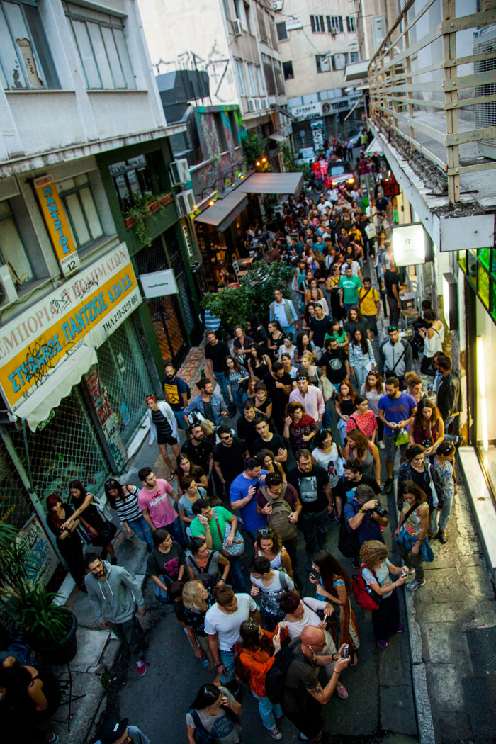 12 Έχει οργώσει την Αθήνα με τις παραγωγές της. Στο σταθμό Ηλεκτρικού στο Μοναστηράκι («No man’s land»), στο κτίριο 56 του Ιδρύματος Μείζονος Ελληνισμού («Situation Rooms»), στη Στοά του Βιβλίου («Everything by my side»), στον Άγιο Παύλο και στην Κυψέλη («Χ Apartments»), στην πλατεία Κλαυθμώνος («Stills»), στην πλατεία Κοτζιά («Domini Public», «Dance de Nuit»), στην πλατεία Συντάγματος («Small metal objects»), στο Πρώην Υπουργείο Εργασίας («Domo de Europa»), στο κτίριο που στέγαζε την Ένωση Ξένων Ανταποκριτών («Exhibit B»), στο ΕΜΣΤ («In plain site»), στο Μουσείο Ακρόπολης («One one one»), από πλατεία Συντάγματος μέχρι πλατεία Κουμουνδούρου («Bodies in urbal spaces»). Έχει πραγματοποιήσει συναυλίες και εκθέσεις στον Κολωνό, στη Διπλάρειο Σχολή, στο Πάντειο Πανεπιστήμιο, στο «Ρομάντζο», στο «Physiopolis», στο δημοτικό κολυμβητήριο ΟΑΚΑ, στον Κεραμεικό, στον Φιλολογικό Σύλλογο Παρνασσό, στο Άσυλο Ανιάτων.