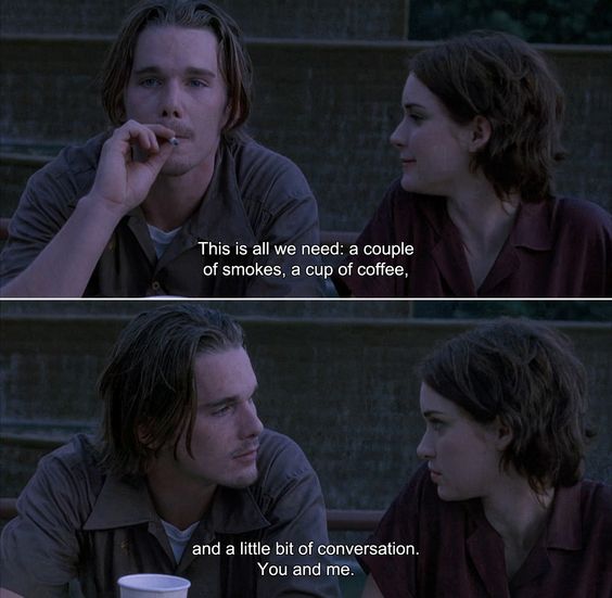 Before Sunrise, Richard Linklater, 1995. (Jesse: Ethan Hawke, Celine: Julie Delpy)