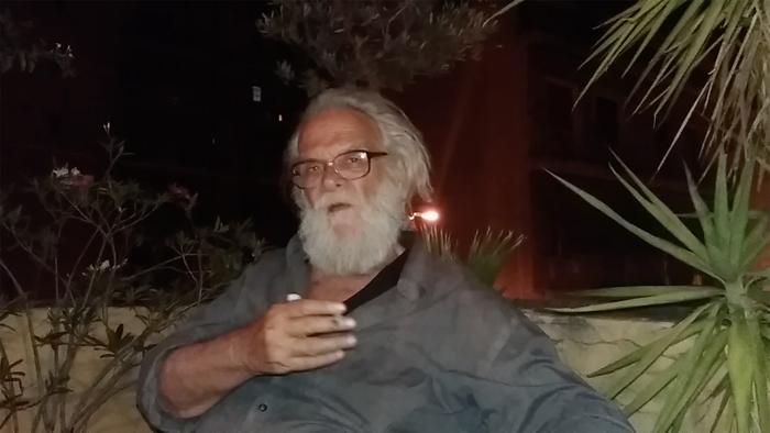 Ο Γιάννης Φακής σε φωτογραφικό απόσπασμα βιντεοσκοπημένης συζήτησης με τον γιο του, 2016, Κουκάκι, Αθήνα