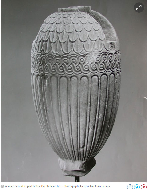 Ο Σικελός αρχαιοκάπηλος Τζιανφράκο Μπεκίνα είχε στην κατοχή του, μεταξύ άλλων, και δύο αρχαιοελληνικά αγγεία του 4ου π.Χ. αιώνα. Για την ακρίβεια επρόκειτο για δύο λευκές ληκύθους, οι οποίες είχαν κλαπεί από την Ελλάδα τη δεκαετία του 1970.