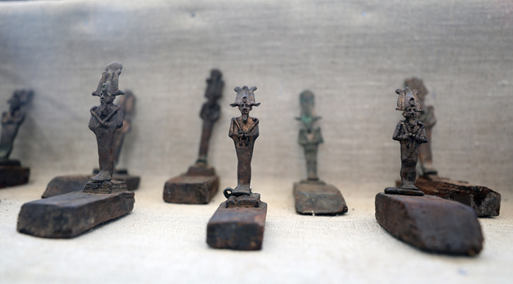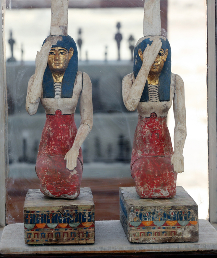 Τα αγάλματα που ανακαλύφθηκαν αναπαριστούν, μεταξύ άλλων, τους θεούς Άνουβις, Αμούν, Μιν, Όσιρις, Ίσιδα, Νεφερτούμ, Μπαστέτ και Αθώρ, ενώ οι αρχαιολόγοι ανακάλυψαν και ένα ακέφαλο άγαλμα του θεοποιημένου αρχιτέκτονα Ιμχοτέπ, όπως ανακοίνωσε το υπουργείο Τουρισμού και Αρχαιοτήτων.