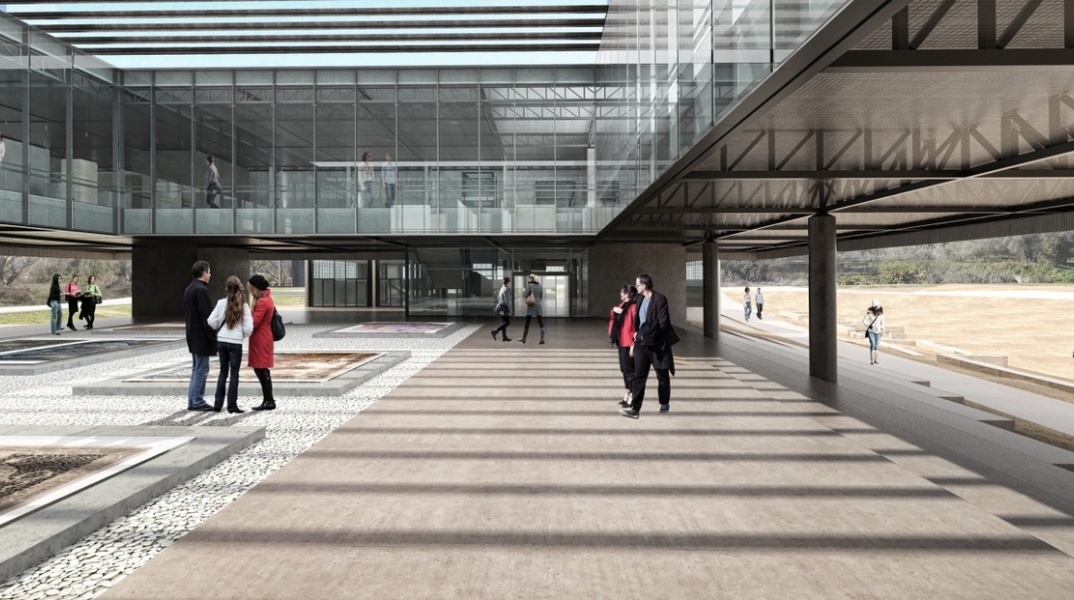 Η αναθεώρηση της αρχικής αρχιτεκτονικής μελέτης, ορίζοντας χαμηλότερη στάθμη του υπογείου, κρίθηκε επιβεβλημένη προκειμένου να καταστεί δυνατή η διατήρηση των αρχαιοτήτων, που αποκάλυψε η αρχαιολογική έρευνα, εντός του περιγράμματος του υπογείου του νέου κτηρίου.