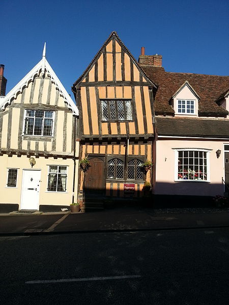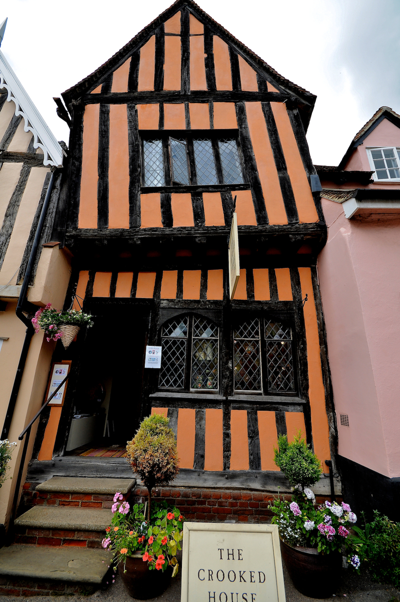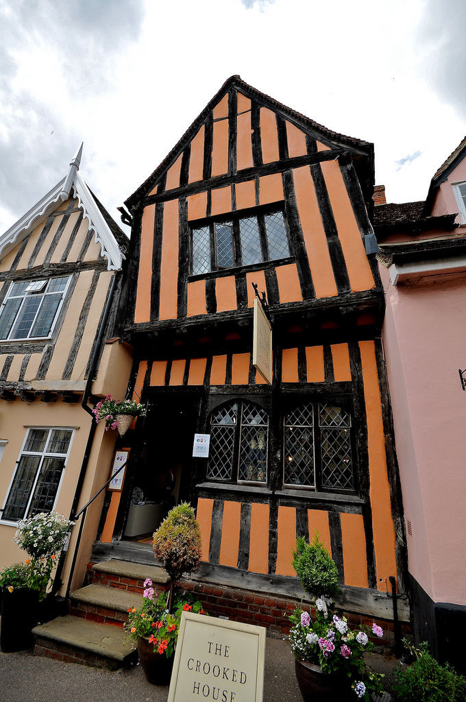 Η μεσαιωνική πόλη του Lavenham μετρά αρκετά στραβά κτίρια, καθώς στην κατασκευή τους χρησιμοποιήθηκε κυρίως ξύλο που κάποια στιγμή άρχισε να λυγίζει. Διασημότερο από όλα τα στραβά σπίτια του Lavenham είναι το παρακάτω, που αυτή τη στιγμή φιλοξενεί ένα κατάστημα τσαγιού.