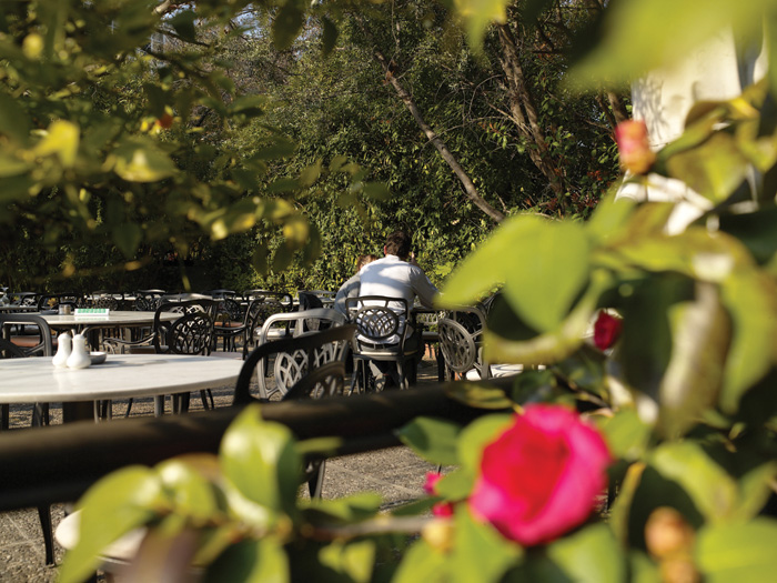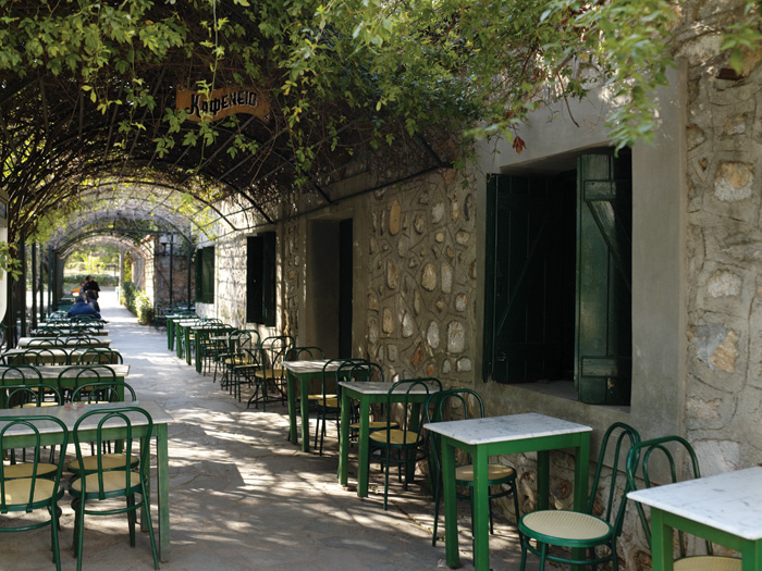 Καφενείο του Εθνικού Κήπου Πνιγμένο στο πράσινο, με καρεκλίτσες γαλλικής εξοχής, σερβίρει ποτό και φαγητό από την ανατολή μέχρι τη δύση του ηλίου.