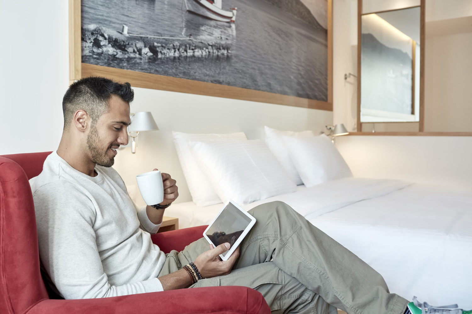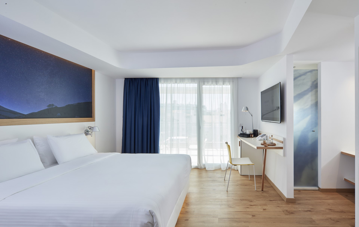 Τα 48 δωμάτια του ξενοδοχείου χωρίζονται σε 5 θεματικές ενότητες, με βάση τις φωτογραφίες που βρίσκονται πάνω από τα κεφαλάρια των κρεβατιών. Τις φωτογραφίες αυτές τράβηξε αποκλειστικά για το ξενοδοχείο ο φωτογράφος Χρήστος Δράζος και όλες τους αποτυπώνουν τόπους ενδιαφέροντος σε απόσταση μιας ώρας. Έτσι την ώρα που κοιμάσαι, ονειρεύεσαι όλα όσα θα δεις αύριο, όπως τη λίμνη του Ζαρού, τα Μάταλα, ένα Μιτάτο στον χιονισμένο Ψηλορείτη, ένα πέτρινο σοκάκι στα Καπετανιανά, αλλά και τη θέα από την Ελούντα προς τη Σπιναλόγκα ή έναν ουρανό γεμάτο αστέρια στα Αστερούσια Όρη. Σκανάροντας τα QR codes που βρίσκονται σε κάθε φωτογραφία, ο επισκέπτης μπορεί να αποθηκεύσει πληροφορίες για τον κάθε προορισμό, για τη διαδρομή προς αυτόν, αλλά και στοιχεία για ταβέρνες, εστιατόρια, παραλίες και αρχαιολογικούς χώρους.