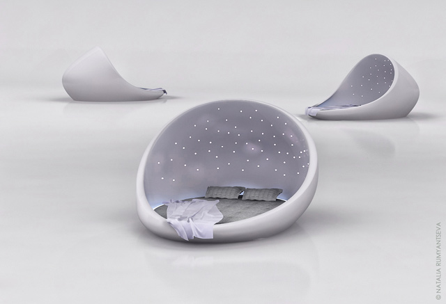 Θυμάσαι που όταν ήμασταν παιδιά κολλάγαμε στο ταβάνι αυτά τα αστεράκια που έλαμπαν στο σκοτάδι; Ε, λοιπόν βρήκαμε την ενήλικη εκδοχή αυτών των αστεριών. Το “Cosmos Bed” σχεδιάστηκε από την designer, Natalia Rumyantseva, για να φέρει τον έναστρο ουρανό στην κρεβατοκάμαρά σου. Είναι φτιαγμένο από άσπρο υαλοβάμβακα, έχει τη μορφή κάψουλας και φωτίζεται απαλά από δεκάδες Led φωτάκια, ειδικά διαμορφωμένα για να μιμούνται το φως των αστεριών.