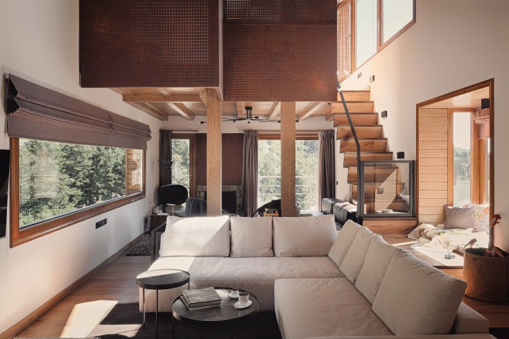 Η Ελλάδα διεθνώς, ως καλοκαιρινός προορισμός, είναι πιο στενά συνδεδεμένη με το νησιωτικό τοπίο. Στα ελληνικά νησιά και ιδιαίτερα στις Κυκλάδες, υπάρχουν δείγματα πολύ ενδιαφέρουσας σύγχρονης αρχιτεκτονικής που είχε ως αφετηρία τοπικές πρακτικές και στοιχεία. Θέλαμε να ανανεώσουμε αντίστοιχα και τον τρόπο που βλέπουμε τα χειμωνιάτικα καταφύγια και τα παραδοσιακα σαλέ. Ήταν πρόκληση, για παράδειγμα, να συνδυάσουμε το ρουστίκ ξύλο και παραδοσιακές μεθόδους κατασκευής με επενδύσεις και υφές που συνήθως συναντώνται στον βιομηχανικό σχεδιασμό, όπως το corten-steel, διάτρητο οξειδωμένο μέταλλο, πλέγμα ξύλου και 3d πλακάκια.
