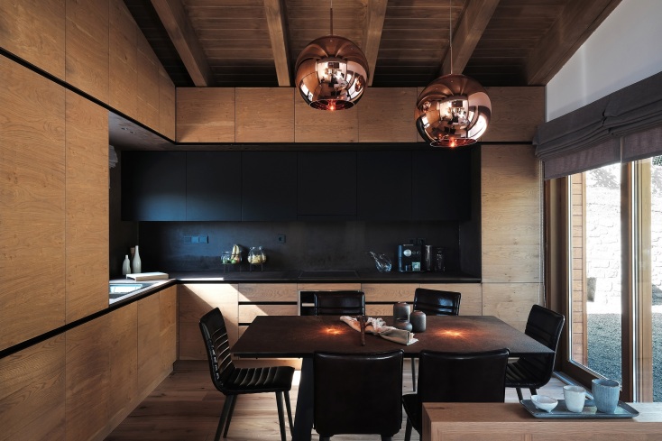 Το όραμά μας ήταν ένας σύγχρονος αλλά ζεστός χώρος που να σέβεται το υπάρχον εξωτερικό κέλυφος και να εναρμονίζεται με αυτό το εξαιρετικό περιβάλλον μέσα στα έλατα. Η βασική στρατηγική μας στον σχεδιασμό ήταν να δημιουργήσουμε καθαρές γραμμές και έναν ενιαίο ανοιχτό χώρο, αναπτύσσοντας την τυπολογία της αστικής κατοίκησης, η οποία είναι λειτουργική, ενεργειακά αποδοτική και γεμάτη φυσικό φως. Έτσι συνδυάσαμε δύο τύπους κατοικιών, αυτόν του σαλέ και του urban loft.