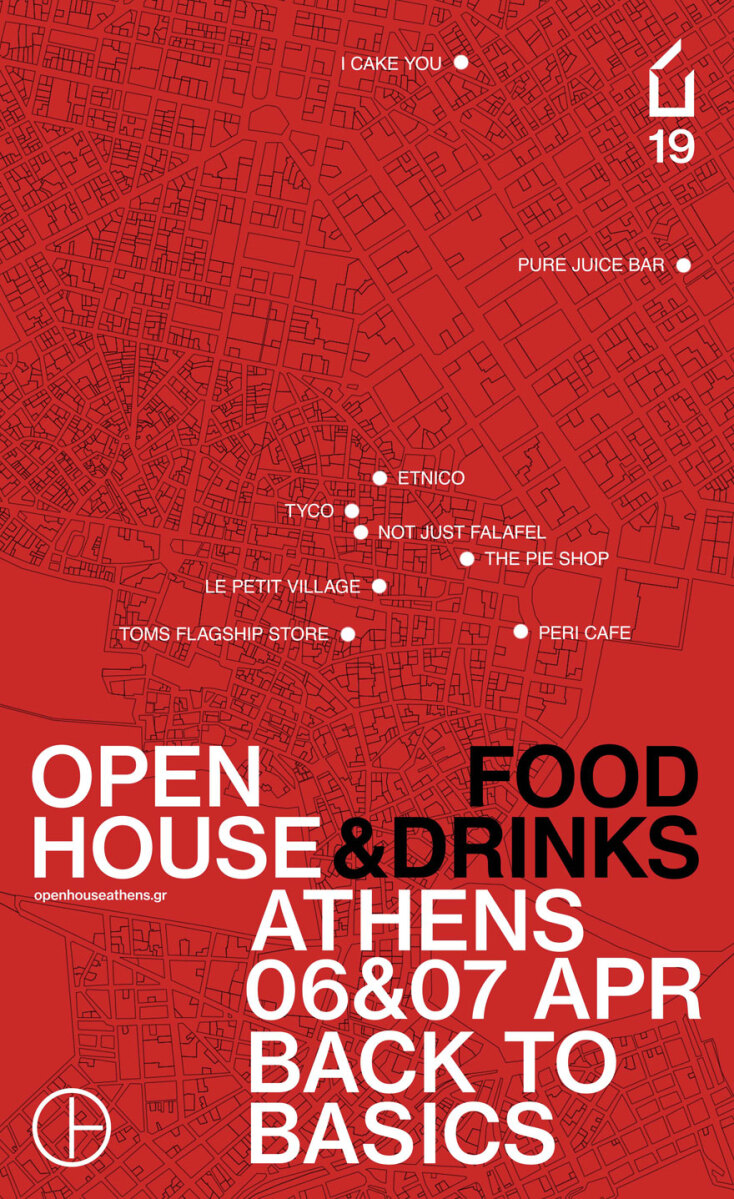 Αν χρειαστείτε ένα ευχάριστο διάλειμμα από τους αρχιτεκτονικούς περιπάτους, δεν έχετε παρά να επισκεφθείτε τους χώρους που συμμετέχουν στο Open Food& Drinks. Επιλεγμένα take away μαγαζιά δημιουργούν προϊόντα με την υπογραφή του προϊόντα που έχουν την υπογραφή του OPEN HOUSE Athens! Περισσότερες πληροφορίες εδώ.