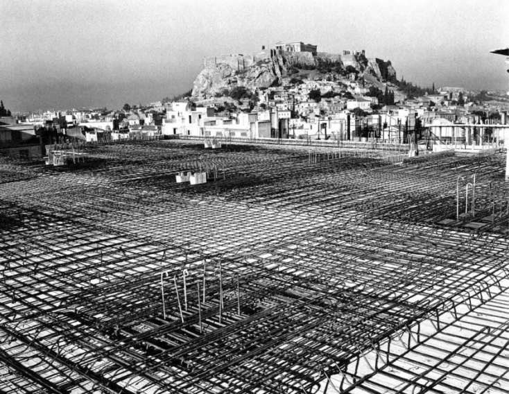 Στην Ελλάδα οι πρώτες κατασκευές από οπλισμένο σκυρόδεμα, όπως το μέγαρο Αφεντούλη (Σταδίου και Κολοκοτρώνη) χρονολογούνται στις αρχές του 20ού αιώνα. Λίγο νωρίτερα, στον υπόλοιπο προηγμένο κόσμο.