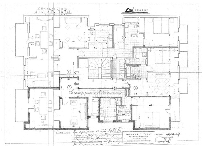 Αρχές 60s ήταν η εποχή που η Αθήνα γέμιζε πολυκατοικίες. Όλες σχεδόν όμοιες, όλες καθαρές και σενιαρισμένες. Μέχρι τα τέλη της δεκαετίας του ’80 όλες θα είχαν γίνει ανθρακί από το καυσαέριο και τα υλικά τους θα είχαν φθαρεί. Η αθηναϊκή πολυκατοικία έγινε το απόλυτο σύμβολο της πόλης, να περικυκλώνει, τιμής ένεκεν, την Ακρόπολη – και αυστηρά να μην την κρύβει.