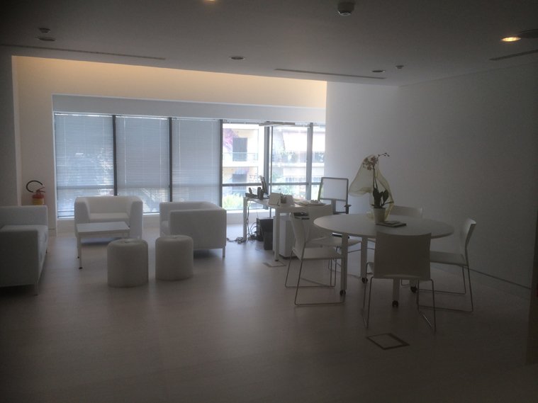 Το γραφείο της Διευθύντριας του ΕΜΣΤ. και σε αυτό όπως και σε όλους τους υπόλοιπους χώρους κυριαρχεί το λευκό, χρώμα που ως γνωστόν περιγράφεται ως «αχρωματικό» και περιέχει όλα τα χρώματα