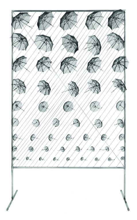 Ομπρέλες, 1995, Ανοξείδωτος χάλυβας και πλέγμα, 230 x 135 x 30 cm