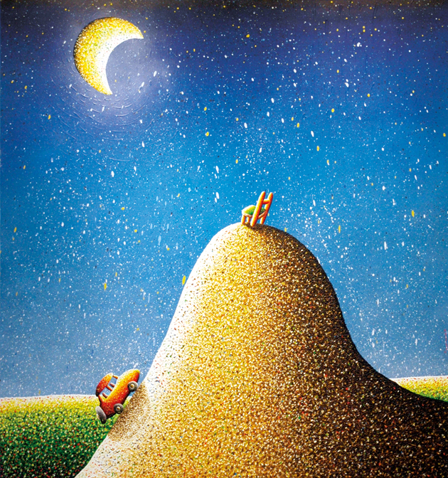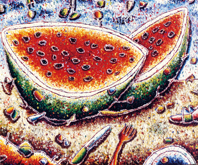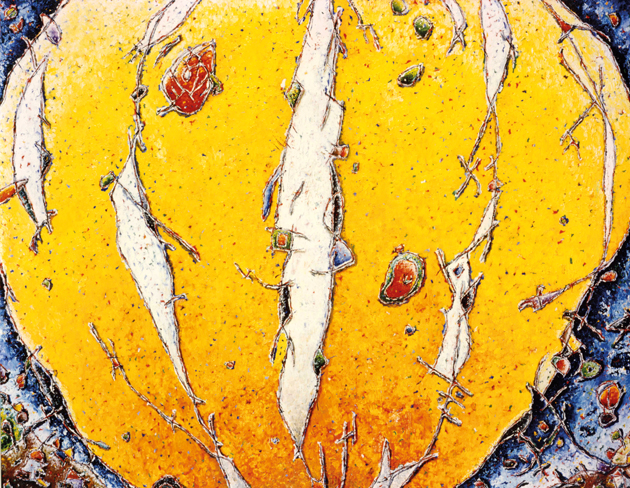 Η ζωγραφική του κινείται ανάμεσα στο άμορφο και το αναγνωρίσιμο, εκεί όπου το χρώμα αποφασίζει μόνο του να γίνει μορφή