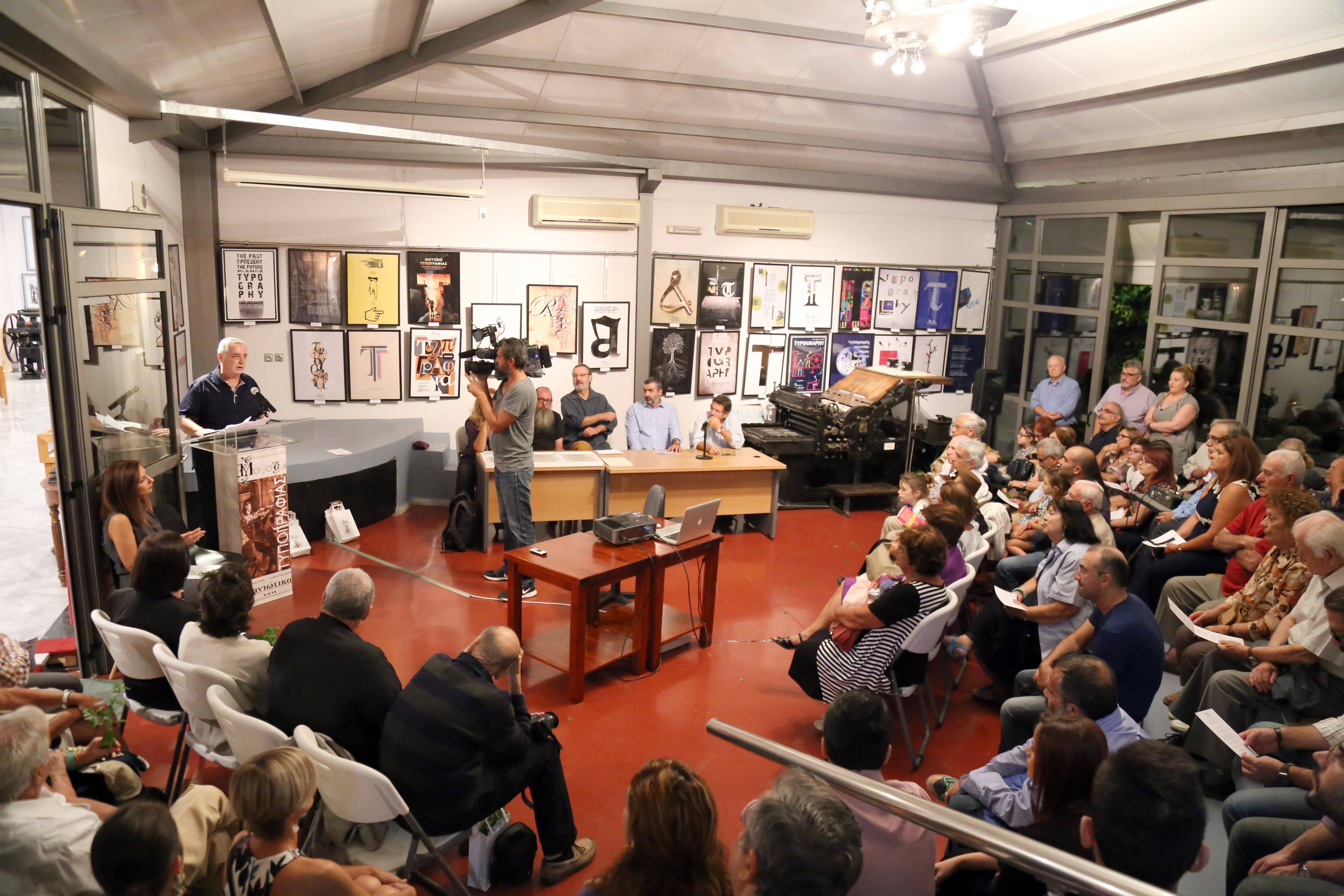 Η εκδήλωση ξεκίνησε με καλωσόρισμα από τον ιδρυτή και πρόεδρο του μουσείου, Γιάννη Γαρεδάκη. Χαιρετισμούς απήυθυναν και τα μέλη της κριτικής επιτροπής Γιώργος Ματθιόπουλος, καθηγητής Εφαρμογών στο Τμήμα Γραφιστικής της Σχολής Καλλιτεχνικών Σπουδών του ΤΕΙ Αθηνών, Αλέξανδρος Κοκκόλας, γραφίστας, καθηγητής Γραφιστικής στο Κολέγιο Βακαλό και Ελένη Σταυρίδη, γραφίστρια των Χανιώτικων Νέων. Την εκδήλωση συντόνισε η διευθύντρια του Μουσείου Τυπογραφίας Ελια Κουμή.