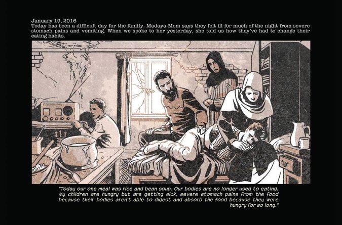 Η Rym Momtaz, μια έμπειρη δημοσιογράφος του δικτύου ABC News αφού δεν κατάφερνε να προσεγγίσει την περιοχή, είπε να δοκιμάσει κάτι διαφορετικό. Κατάφερε να επικοινωνήσει με μια μητέρα πέντε παιδιών που ζει στη Madaya και στα αραβικά, ξεκίνησαν μια συζήτηση. Κάθε μέρα της έστελνε μηνύματα με τα νέα της ημέρας, τι έκανε από την ώρα που ξυπνούσε μέχρι το βράδυ που έπεφτε για ύπνο, πώς τα έβγαζε πέρα, τι κινδύνους αντιμετώπιζε και πώς φρόντιζε τα παιδιά της. Το καθημερινό αυτό update της εμπόλεμης μητέρας ήταν συγκλονιστικό. Αρχικά ανέβαινε σε μορφή ημερολογίου με τίτλο «Η μάχη μιας οικογένειας για την επιβίωση». Στη συνέχεια και όσο έβλεπε ότι το υλικό που είχε στα χέρια της ήταν μοναδικό, ήθελε να κάνει κάτι πιο μεγάλο και πιο μαζικό. Ήθελε να κάνει την ιστορία της μητέρας από τη Madaya να φτάσει σε κόσμο που δεν βλέπει ειδήσεις, που δεν παρακολουθεί πολεμικές ανταποκρίσεις από τη Συρία, που δεν διαβάζει αναλύσεις ειδικών στα Διεθνή των εφημερίδων. Το ίδιο σκεφτόταν και ο executive producer του ψηφιακού τμήματος του δικτύου ABC News Digital, ο Dan Silver: πώς μπορούσε η συγκλονιστική αυτή ιστορία να ειπωθεί οπτικά. Και κάπως έτσι μπλέχτηκε η γνωστή εταιρία Marvel Comics.
