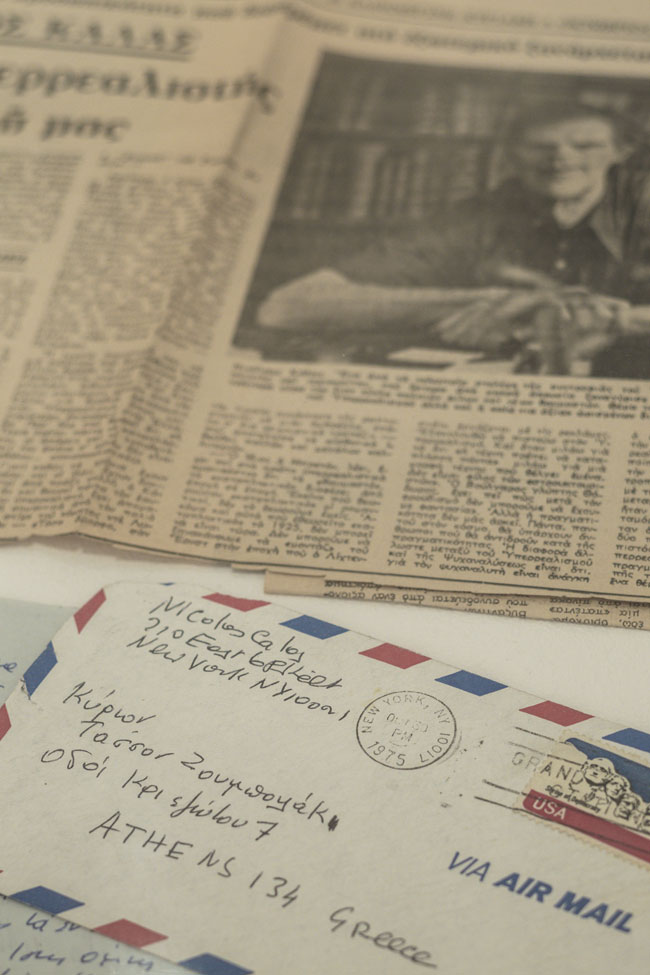 Το αρχειακό υλικό της Γκαλερί Ζουμπουλάκη συμπληρώθηκε από το αρχείο Nicolas and Elena Calas της Βιβλιοθήκης των Βορείων Χωρών στην Αθήνα και του Nicolas Calas Estate, από το Μουσείο Louisiana της Κοπεγχάγης. Η Δάφνη εξηγεί την ιστορία κάθε γράμματος και μου επισημαίνει πως στο εξώφυλλο της ποιητικής συλλογής του Κάλας, «Οδός Νικήτα Ράντου», η φωτογραφία είναι του πατέρα της. Υπήρξαν φίλοι το ζεύγος Ζουμπουλάκη με τον Κάλας, αλλά η Πέγκυ Ζουμπουλάκη προτιμάει να κρατάει τις αναμνήσεις δικές της και να μην τις μοιραστεί μαζί μας. Αρκεί η έκθεση. Ούτε φωτογραφίες υπάρχουν από εκείνη την έκθεση, μόνο άρθρα σε εφημερίδες. «Ήταν ουσιαστικά μία από εκείνες τις εκθέσεις που έφεραν το ελληνικό, μη εξοικειωμένο, κοινό σε επαφή με τη σύγχρονη τέχνη. Κι ενώ υπάρχουν τα βιβλία των επισκεπτών από εκείνα τα χρόνια για άλλες εκθέσεις σύγχρονης ζωγραφικής –όπου διάβαζες για παράδειγμα το σχόλιο “Είχαμε ακούσει τόσα για τον Πικάσο, όμως δεν περιμέναμε πως έκανε τέτοιες βλακείες”–, της χρονιάς 1977 δεν υπάρχει. Όπως και δεν έτυχε να συναντήσω μέχρι σήμερα κάποιον που να μου πει πώς είχε έρθει και σε εκείνη την έκθεση. Από την άλλη συναντώ νέους που έρχονται ίσως και για να επιβεβαιώσουν το μύθο του Κάλας ή να γνωρίσουν την όχι τόσο γνωστή ιδιότητά του, αυτή του επιμελητή ή για να δουν έργα τόσο μεγάλων καλλιτεχνών».