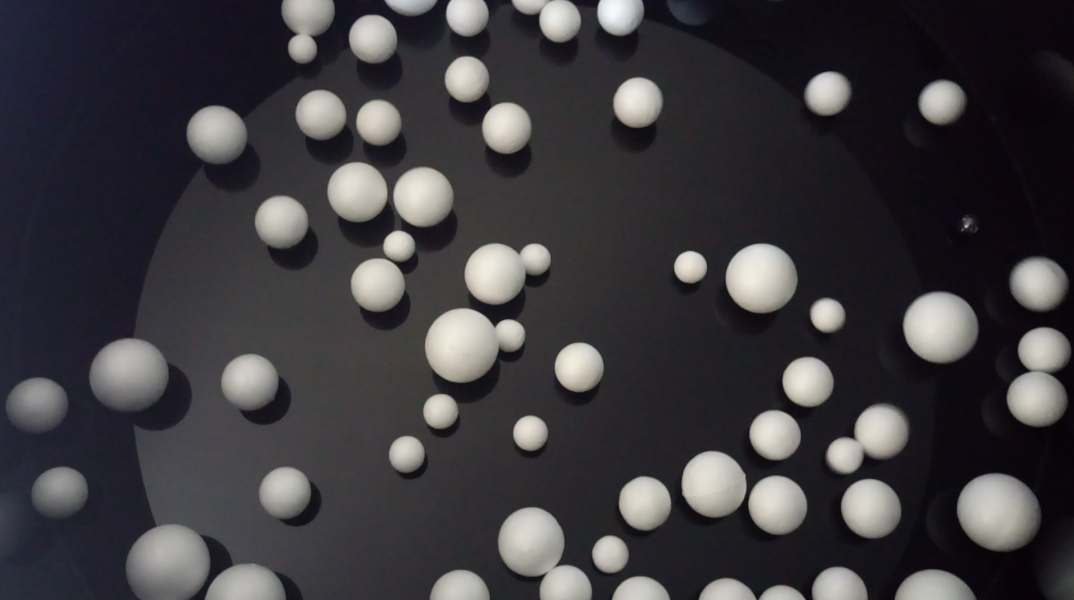 Το συμβαίνον έχει τη μορφή ενός λιωμένου χάρτη, ενός ρευστού συνόλου από γαίες, που όμως αγγίζουν σχεδόν το καθεστώς της παραμόρφωσης. Χύνονται. Κατρακυλούν. Η Έλενα Χατζηαθανασίου με σπουδές σε Ιατρικά και Βιολογικά εργαστήρια και επαγγελματική εμπλοκή με τα πεδία της παθολογοανατομίας, διαθέτει μια εικαστική γλώσσα που δανείζεται στοιχεία από τον κόσμο των μηχανημάτων διάγνωσης. «Ναι, ξέρεις τα πρώτα χρόνια μετά την Καλών Τεχνών πειραματιζόμουν πολύ φτιάχνοντας φαντασιακούς μικρόκοσμους, όπως οι αποικίες των κυττάρων που μελετώ στη δουλειά μου». Καθρέφτες, plexiglass, ψηφιακές εκτυπώσεις και μια δεινή επιμέλεια από τη σκηνογράφο, γλύπτρια Μαγδαληνή Σίγα.