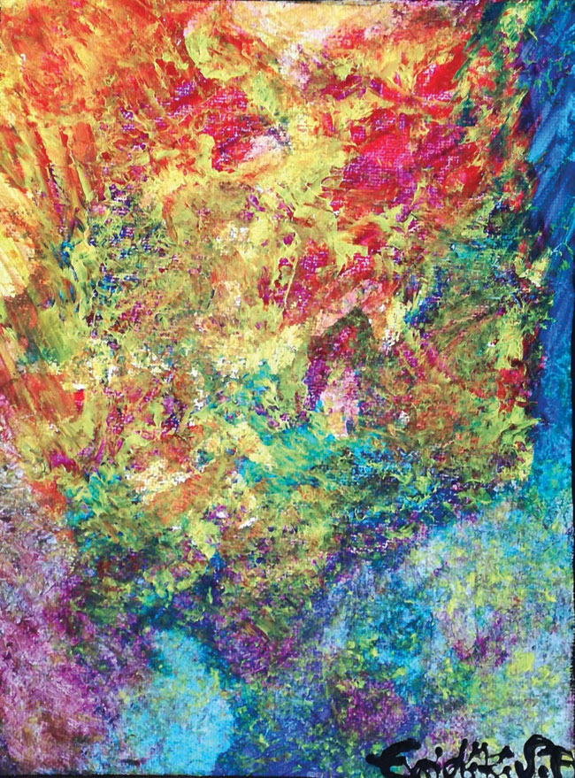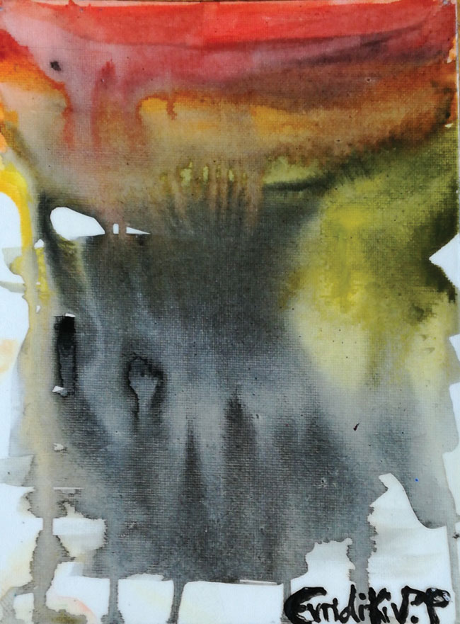 Δεν είναι μια συγκεκριμένη. Βάζω κάτω τα τελάρα, τα χρώματα και τα πινέλα και ξεκινώ. Μπορεί να κάνω έναν πίνακα πολύ δυνατό, είτε είμαι σε καλή διάθεση είτε δεν είμαι, όπως και το αντίθετο. Το σίγουρο είναι ότι είναι η διέξοδός μου. Με ηρεμεί, με χαλαρώνει, με γεμίζει. Θεωρώ ότι όλοι πρέπει να έχουμε μια διέξοδο, κάτι δικό μας για να ξεφεύγουμε από τα προβλήματα της καθημερινότητας. Έχει τύχει να διανύσω μία περίοδο –πρόσφατα– στην οποία δεν μπορούσα να ζωγραφίσω τίποτα, εξαιτίας της ξαφνικής κι επώδυνης απώλειας ενός πολύ αγαπημένου μου προσώπου.