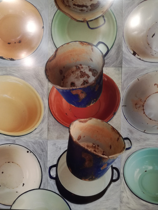 Η ατομική έκθεση της Toula Liasi με τίτλο «Σκουριασμένες μαρτυρίες» περιλαμβάνει κολάζ φωτογραφιών από παλιά μεταλλικά αντικείμενα με τα σημάδια του χρόνου και της σκουριάς αποτυπωμένα πάνω τους, όπως ακριβώς συμβαίνει και με την ποιότητα της ζωής των ανθρώπων που ζουν ακόμη στα κατεχόμενα της Κύπρου, ιδιαίτερη πατρίδα της εικαστικού.