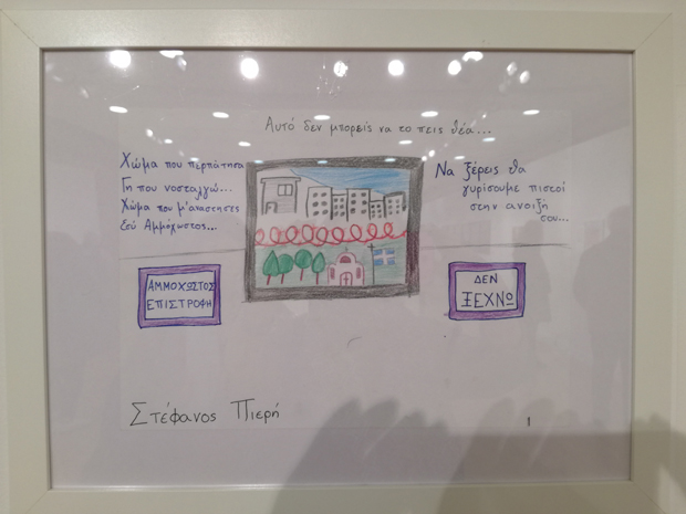 Είναι ιδιαίτερα συγκινητικό το πώς αποτυπώνουν τα παιδιά με σχέδια ή με λόγια την έννοια της λέξης «σπίτι» και το πώς φαίνεται να τα απασχολεί ένα θέμα που γνωρίζουν μέσα από τις αφηγήσεις και εμπειρίες των γονιών τους, αλλά έχει σημαδέψει και τη δική τους ζωή.