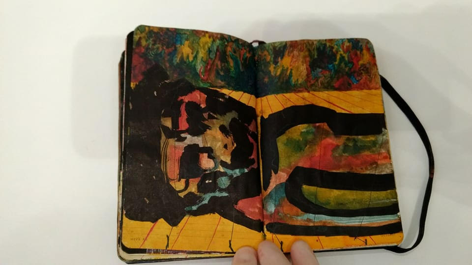 Από τα χρόνια του σχολείου πιστεύω ότι πολλοί από μας καταπιαστήκαμε να φτιάξουμε χειροποίητα βιβλία με ζωγραφιές και κείμενα, μεικτής τεχνικής ας το πούμε. Ο Δαυίδ Σαμπεθάι, που είχε την ιδέα αυτής της έκθεσης, η οποία βέβαια δεν μπορεί να λειτουργήσει εμπορικά για την γκαλερί, δεν πουλιούνται τα έργα, από μικρό παιδί ζωγράφιζε παντού. Είναι ένας ανεξάντλητης φαντασίας και δημιουργικότητας νέος καλλιτέχνης, για τον οποίο πιστεύω ότι θα ακούμε πολλά στο μέλλον, και πρότεινε στην Ελευθερία Τσέλιου να εκθέσει μια συλλογή παρόμοιων βιβλίων, ελληνικών και ξένων. Το αποτέλεσμα είναι μαγευτικό και η εμπειρία απολύτως μοναδική. Περνά ώρες κανείς στις αίθουσες της γκαλερί βρίσκοντας την οικεία αίσθηση μιας βιβλιοθήκης που σου αποκαλύπτει κάτι πέρα από ολοκληρωμένα έργα. Είναι σα να εντρυφείς στις σημειώσεις των ζωγράφων, σα να διαβάζεις αρχαία βιβλία, να παρακολουθείς προσωπικές πορείες. Έτσι όπως έχουμε συνηθίσει να βλέπουμε με διαφορετικό τρόπο τις δουλειές των εικαστικών, η παράθεση αυτή ενός τόσο ιδιαίτερου μέσου ξανανιώνει τα μάτια και το μυαλό. Φτάνει βέβαια να δεχτείς το ρυθμό του είδους αυτού της ανάγνωσης, πιο γρήγορο από βιβλίο, πιο αργό από πέρασμα σε έκθεση.