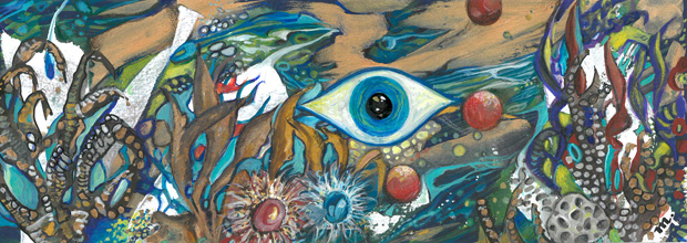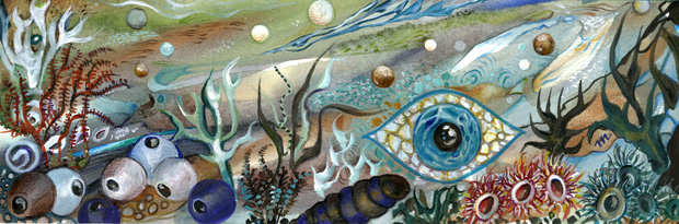 Μπαίνοντας πριν λίγες μέρες στο σπίτι μίας φίλης, το μάτι μου έπεσε σε ένα έργο ζωγραφικής, μέσα σε πλέξιγκλας, τοποθετημένο σε περίοπτη θέση πάνω σε ένα έπιπλο. Απεικόνιζε έναν θαλάσσιο βυθό και το τεράστιο μάτι που κυριαρχούσε στο κέντρο της εικόνας, έδινε την εντύπωση ότι με παρατηρούσε, όπως και εγώ εκείνο.