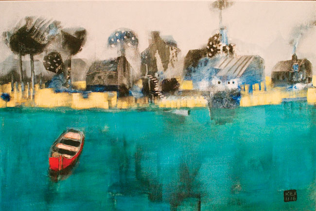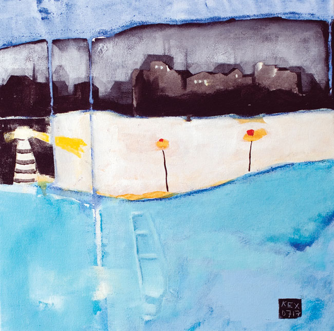 Με τι μπορεί να μοιάζει το μέλλον; Σίγουρα κανείς δεν γνωρίζει κι αυτό αφήνει περιθώρια σε όσους αναρωτιούνται να το δημιουργήσουν. Στην καινούργια σειρά έργων του ο Χρήστος Κεχαγιόγλου δεν δημιουργεί sci fiction εικόνες. Παραμένοντας πιστός στην τοπιογραφία τη ρευστοποιεί, αφήνοντας το υδάτινο στοιχείο να εισχωρήσει «σβήνοντας» μέχρι και τα χρώματα. Το αποτέλεσμα είναι πιο ονειρικό και στέλνει ένα μήνυμα. Όπως λέει και ο ίδιος: «Ας πειραματιστούμε λοιπόν κι ας φανταστούμε το μέλλον, αφού έχουμε και τη νοημοσύνη και τη δυνατότητα της απόφασης, απλό, γεμάτο δροσιά και φαντασία, σαν τη ματιά ενός βράχου, ενός πουλιού, ενός δέντρου. Ώστε να δημιουργήσουμε κάτι φωτεινό που θα μας οδηγεί με τη σειρά του να κάνουμε αυτό που οι άνεμοι κι οι θάλασσες κι οι δυνάμεις των νερών και της γης, το φως και όλα τα πλάσματα κάνουν από τη φύση τους. Να έχουμε συνείδηση ότι είμαστε ένα με τον κόσμο και να διατηρούμε την ισορροπία του».