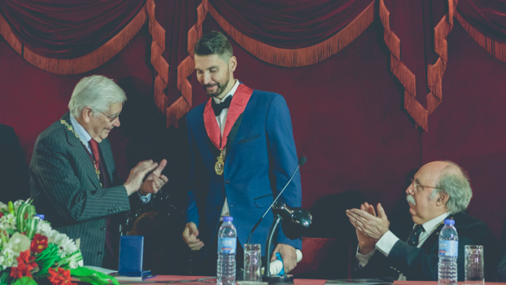 Μετά την λήξη της παρασημοφόρησης, ο πολυβραβευμένος δημιουργός προσέφερε από τον ελληνικό Οίκο Badounas watch-jewel έναν μοναδικό, συμπαγή ασημένιο δίσκο ως δώρο στον Πρίγκιπα H.R.H. Dom Miguel de Braganaça για την ελληνικο-πορτογαλική φιλία. Μια πραγματικά πολύ συγκινητική στιγμή για το κοινό.