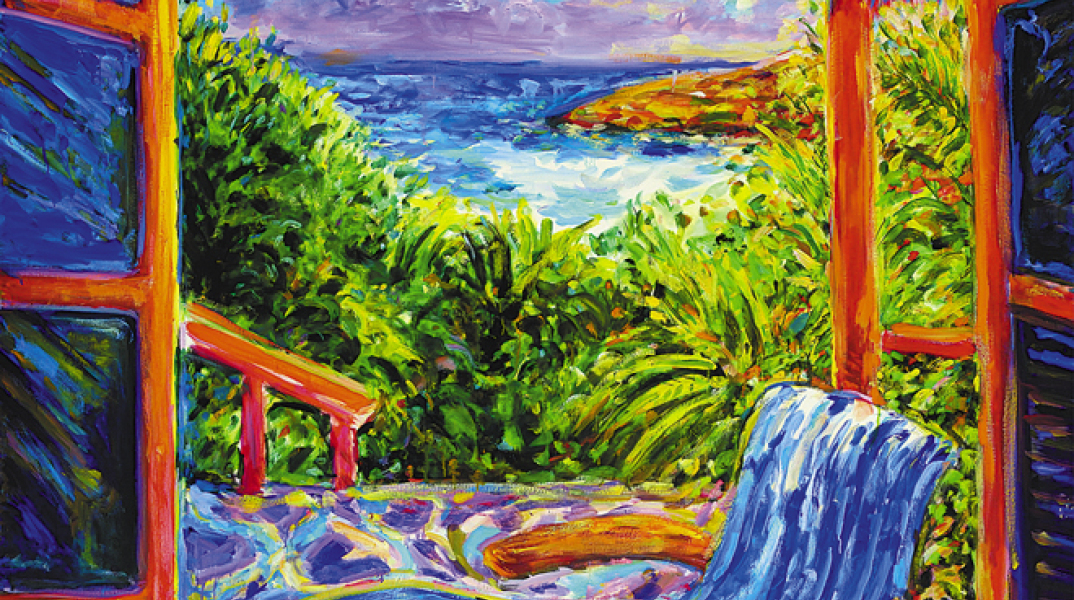 Ερωτευμένος με το ελληνικό φως και τη γαλλική παλέτα, ο Γιώργος Χαδούλης, ζωγραφίζει φωτεινούς ήλιους και ανθισμένα τοπία...