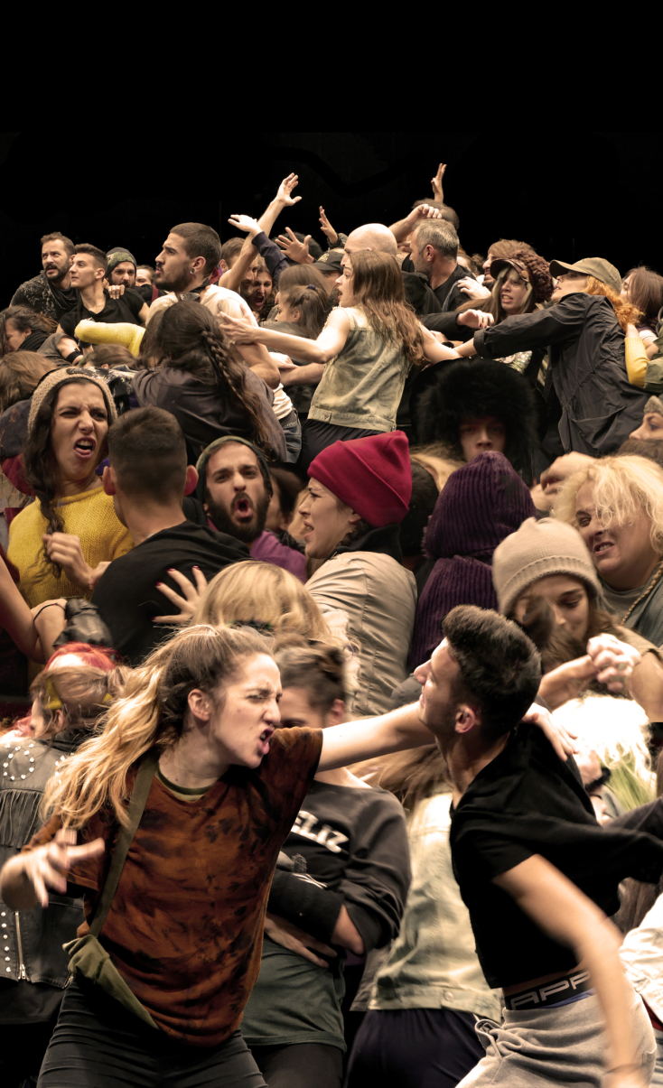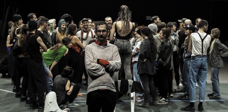 Με την «Αντιστολή» και εξήντα περφόρμερ υπό την καθοδήγηση της Αγγελικής Στελλάτου, ο visual artist επιθυμεί να ξανασκεφτούμε τη θέση μας στην κοινωνία