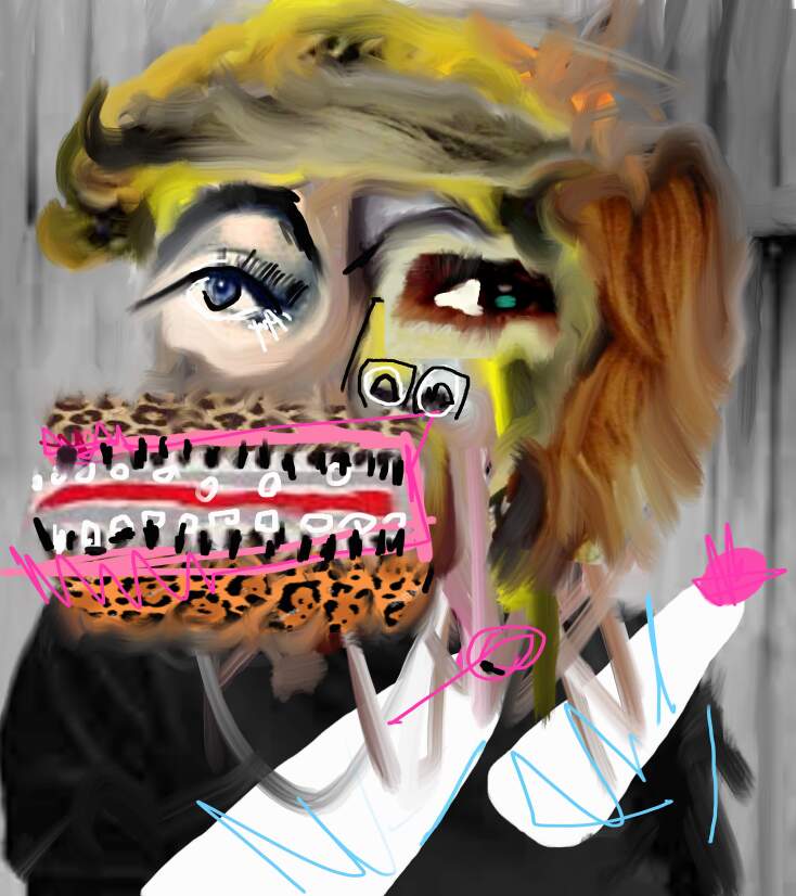 Αυτή είναι μια υπέροχη περιγραφή, με έκανε να γελάσω! Για ένα δευτερόλεπτο τους είδα όλους εκεί να κρύβονται πίσω από τη λέξη κιτς. Ο Ποπ Νεο-Εξπρεσσιονισμός ως αίσθηση πηγάζει από το γενικότερο ύφος του Νεο-Εξπρεσσιονισμού, το οποίο συχνά διέπεται από ζωηρά χρώματα (τα οποία λατρεύω) και τις αντιθέσεις αυτών. Οι επιρροές μου πηγάζουν από τον φοβισμό-με τις ραγδαίες και βίαιες τεχνικές της αυθόρμητης ζωγραφικής του προσθέτοντας σε όλο αυτό ποπ εικόνες, οι οποίες έχουν σημαντική επιρροή στην ανάπτυξη διάφορων πρόσφατων γενιών. Μου αρέσει να σκέφτομαι την δουλειά μου ως «παραβατική» καθώς το μεγαλύτερο μου πάθος στη ζωή είναι να εξερευνώ και να ξεπερνάω τα όρια και τους κανόνες. Κάπως έτσι, νομίζω ότι ίσως είμαι ένα βήμα μακριά από το κιτς. Επανευφευρίσκοντας συνεχώς τον εαυτό μου, έρχομαι αντιμέτωπος με τις επιρροές μου και την παραβατική αυτήν αναζήτηση (της ίδιας μου της ύπαρξης) δημιουργώ τέχνη.