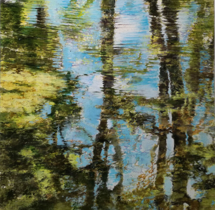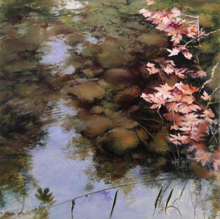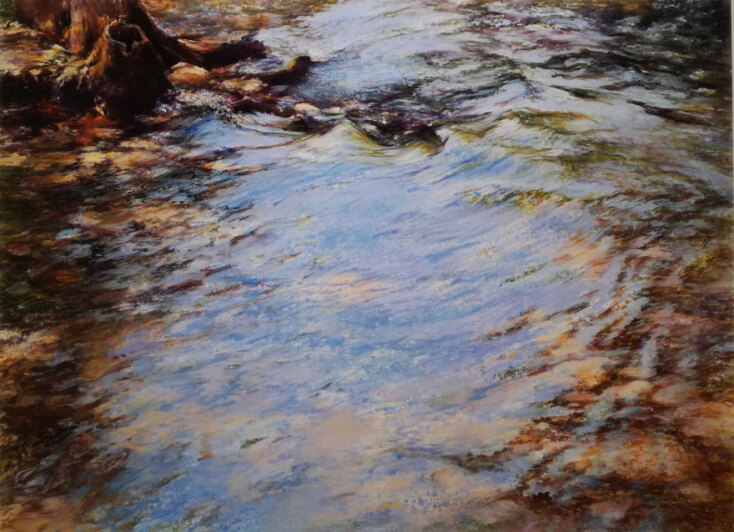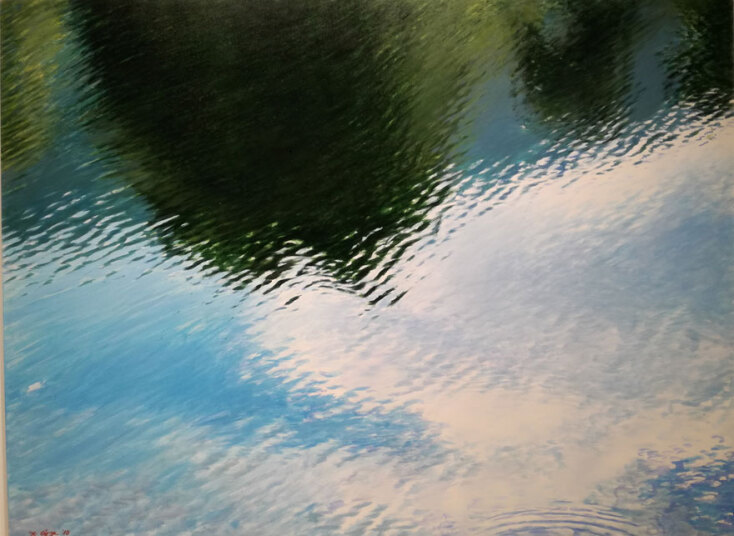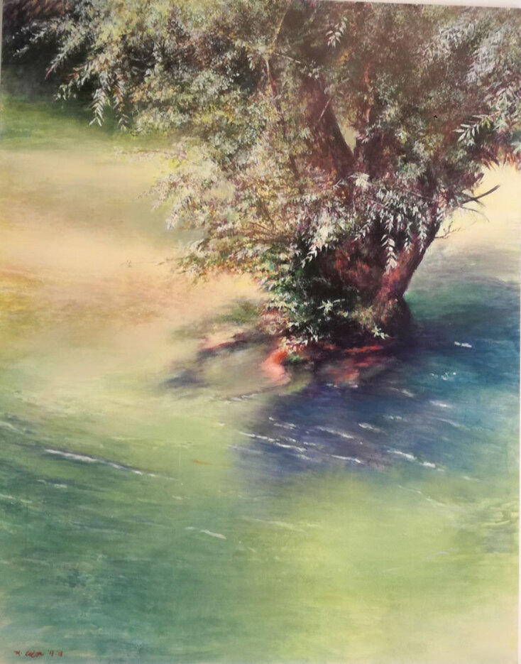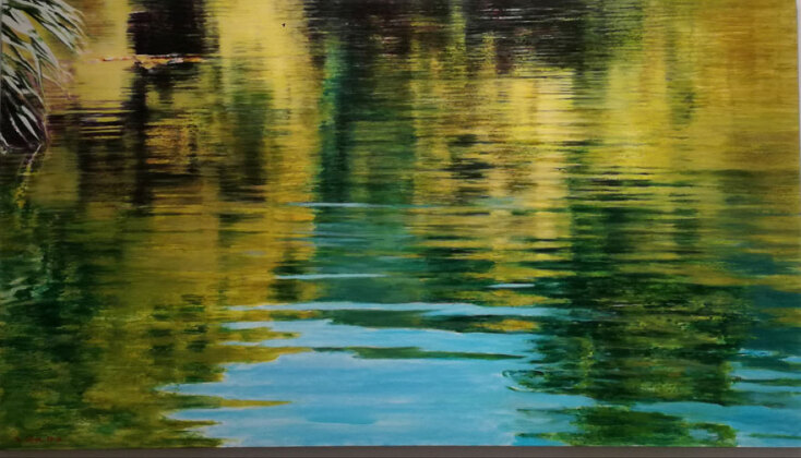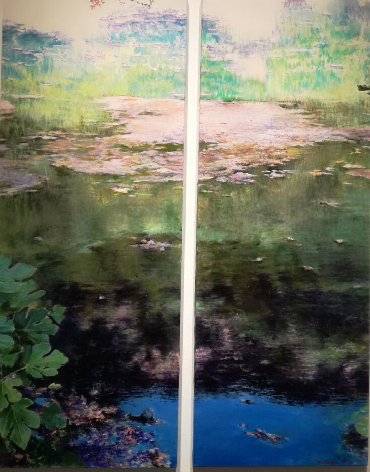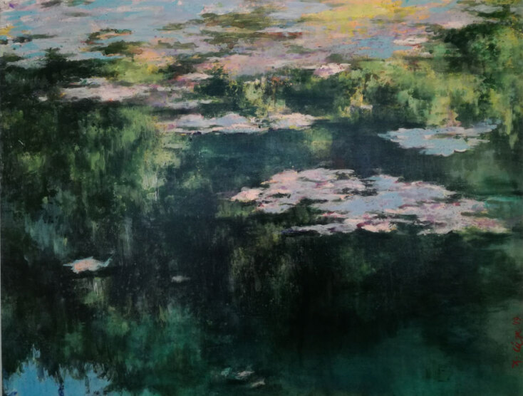 Σε άλλη αίθουσα, πίνακες με κυματισμούς από ελαφρύ αεράκι δίνουν κίνηση σε νούφαρα, μικρά κλαδιά δένδρων, φύλλα, και χορτάρια και τα κάνουν να έρθουν πιο κοντά το ένα στο άλλο, για να συνθέσουν όλα μαζί ονειρικές εικόνες που τραβάνε από την πρώτη στιγμή το βλέμμα του θεατή με τα ζωντανά χρώματα και το υπέροχο φως τους και του εξάπτουν τη φαντασία για όμορφα ταξίδια στην ύπαιθρο.