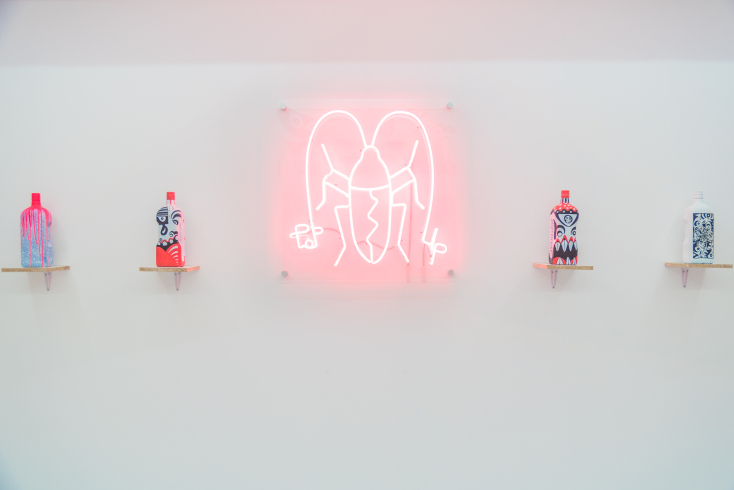 Γιατί αυτή ή έκθεση είναι απροσδόκητη, όπως μια πρόωρη εκσπερμάτωση, προσωρινή, όπως ένα συνάχι, και, ξαφνική, όπως μια κατσαρίδα που πετιέται απ’ το σιφόνι. Ε, και η ζωγραφική μου, λένε, πως έχει κάποια pop στοιχεία.
