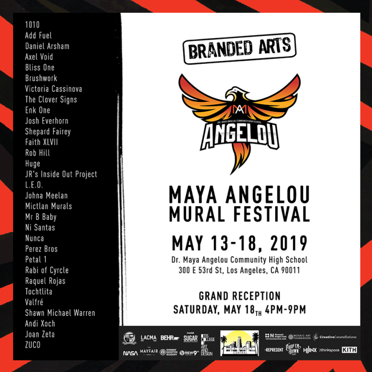 Ένα σχολείο στο Λος Άντζελες έκανε προσφάτως μια προσπάθεια, φιλοξενώντας το «Maya Angelou Mural Festival»: επί μία εβδομάδα, μια εικοσάδα και παραπάνω ντόπιοι και διεθνείς καλλιτέχνες δρόμου δημιούργησαν μεγάλων διαστάσεων τοιχογραφίες στις εγκαταστάσεις του Dr. Maya Angelou Community High School.