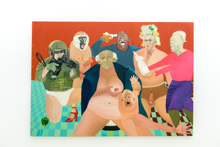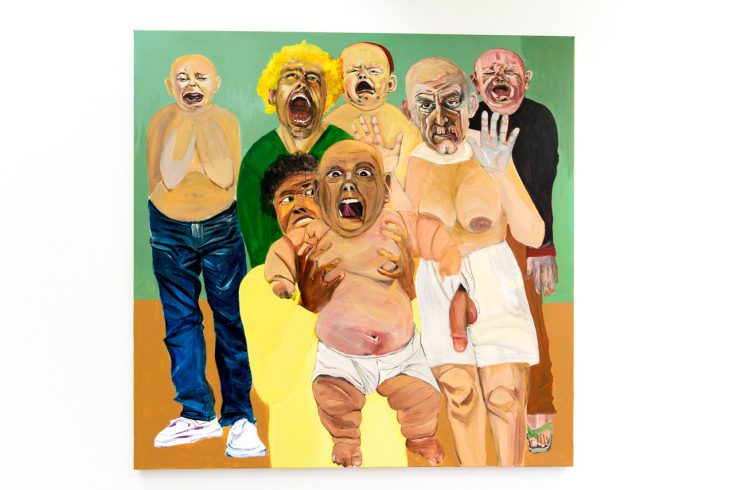 Ωμότητα και τραύματα, επιζώντες από τύχη, αλλά και απρόσμενες χειρονομίες καλοσύνης, ρομαντισμός που ανθεί στους ερειπίωνες, ξεφλουδισμένα υπέργηρα κτίρια κοντράστ με τις νέες αστραφτερές κατασκευές – κάπου εδώ μένει και η νέα πρόεδρος της ελληνικής δημοκρατίας, ε; Βλαμμένοι, πειραγμένοι και λογικοί, νάρκισσοι και ωραίοι, κακάσχημοι ή σακάτηδες, γέροι επιδειξίες στα πάρκα, μοντέλα, σταρς στην ΤιΒί, ευτοπία, δυστυχία, όλα γυρίζουν σαν τρελά, άμαξες και ρόδες που πάνε στο πουθενά. Της Αθήνας αλλά και του Between my Legs: Πριαπικοί σάτυροι και γριές ή κοριτσάκια ψόφια για κουτούπωμα ή μαστίγιο, απαιτητικοί εραστές, αφέντρες, σκλάβοι, κτητικοί πορνόγεροι και άμαθοι - άμαχοι ονειροπόλοι που βρέθηκαν στο όργιο κατά λάθος, τέτοια απεικονίζονται στους πίνακες της έκθεσης.