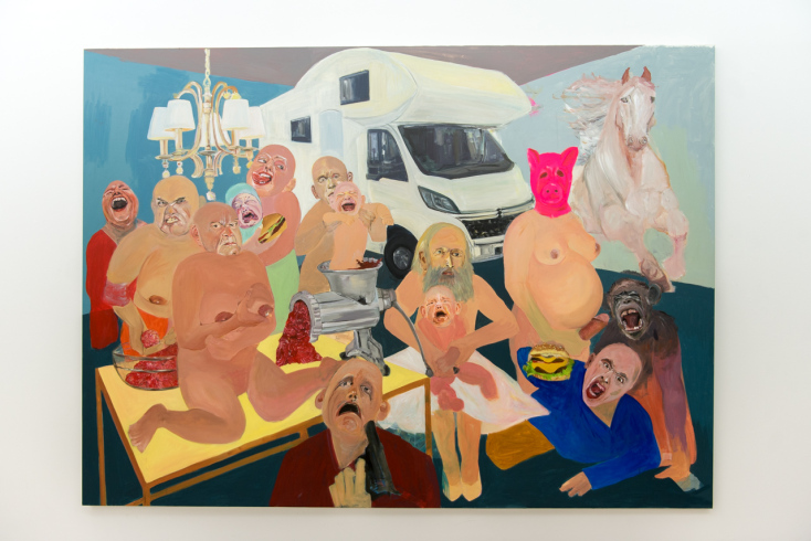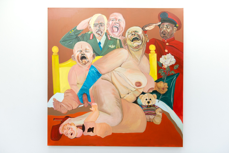 The world is sad. Μεγαλύτερα όνειρα, μεγαλύτερα σημεία και ερωτική χημεία και τέρατα και τέρματα. Πράγματα βέβαια που στην πραγματική ζωή δεν συμβαίνουν ούτε για πλάκα, είπαμε, είναι άγρια εκεί έξω αλλά όχι κι έτσι, εδώ στην έκθεση της Κιτσοπούλου συμβαίνουν και γκαζώνουν και γαζώνουν κατά ριπάς: φαλακροί με τεράστια πέη και ξεχειλωμένα βυζιά, επιδειξίες και ακόρεστες σεξομανείς τηλεφρικαρισμένες νοικοκυρές, στρατόκαβλοι σάτυροι με γαλόνια ή στολή παραλλαγής πάνω και κάτω με το σλιπάκι, κι ο παππούς παίρνουν με το φανελάκι; Παππούδες να δεις που παίρνουν, παίρνονται, δίνουν μάτι, παίρνεις μάτι. Φουλ της άνομης λαγνείας. Οι πίνακές της είναι ένα βέβηλο γλέντι, τα διαμερίσματα βογγούν από πάσης φύσεως «ηδονές». Η ζωγραφική της είναι άναρχη αλλά και πολύ συγκροτημένη, ο εξπρεσιονισμός της πάει χέρι-χέρι και πινελιά και κοπροραπτική κολάζ με μια ανάπηρη, λιωμένη σαν ροζ κραγιόν ποπ αρτ, λαϊκός Τσαρούχης και κοσμοφρίκ Μπέικον, μπράβο θάρρος, να χαρώ εγώ «αφήγηση» και χαίρε κόνσεπτ ακόνσεπτο. Στην παρούσα καλλιτεχνική έκθεση παρουσιάζεται περιεχόμενο αυστηρώς ακατάλληλο, σεξουαλικές σκηνές, εκθέματα που μπορεί να προκαλέσουν ενόχληση, βωμολοχική φρασεολογία. Θες να καβλώσεις; Έλα να με νιώσεις, το εργαλείο μου είναι αγριεμένο, το κάπνισμα καταστρέφει την υγεία, πάρε ένα πνεύμονα φίλου. Μαύρο χιούμορ.