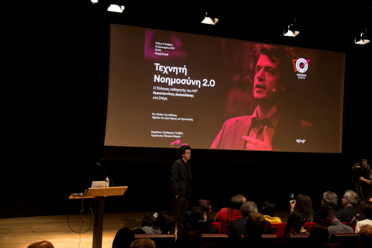 Ο Κωνσταντίνος Δασκαλάκης, καθηγητής στο MIT, εμφανίστηκε στη Στέγη του Ιδρύματος Ωνάση για να μιλήσει για την εξελισσόμενη επανάσταση στην τεχνητή νοημοσύνη, την τεχνολογία που κρύβεται πίσω από αυτήν και τα φιλοσοφικά ερωτήματα που προκύπτουν για τη μάθηση και τη νοημοσύνη.