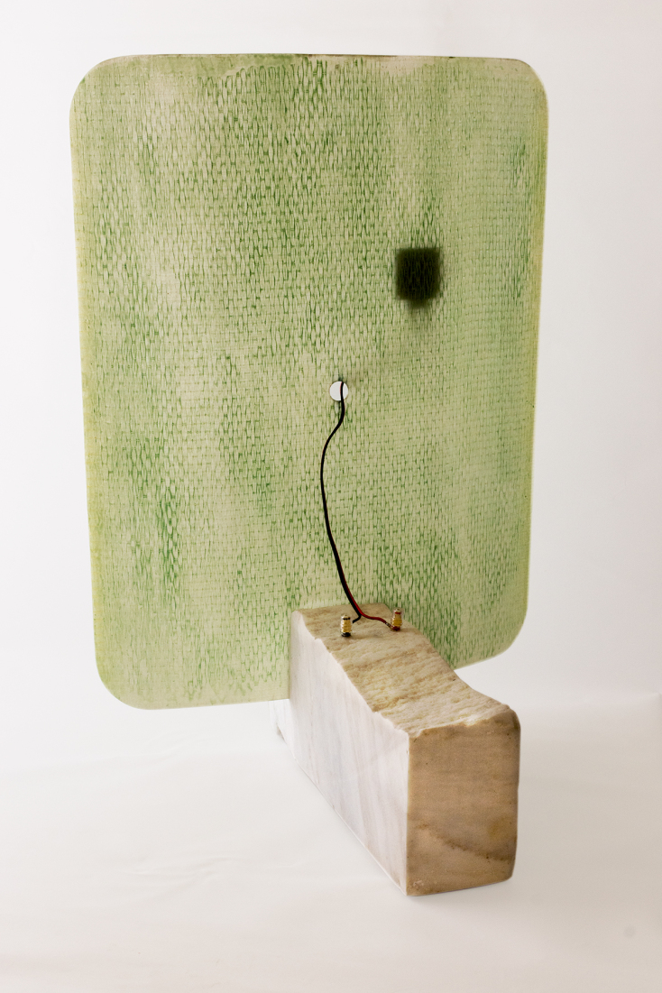 Το Πράσινο είναι έργο μικτής τεχνικής με ηχείο που εκπέμπει μουσική, ύψους 80 εκ. ενώ το Μπλε, αποτελεί επίσης ηχητικό γλυπτό μικτής τεχνικής και έχει ύψος 115 εκ. Ο ήχος που αναπαράγουν τα δυο γλυπτά αποτελεί μία ψηφιακά ηχογραφημένη αλγοριθμική σύνθεση, γραμμένη με τη γλώσσα Supercollider. Η τέχνη συναντά την τεχνολογία. Πώς όμως προέκυψε η ιδέα δημιουργίας των δυο ηχογλυπτών και με τι τρόπο διαμορφώθηκαν; «Οι πρώτες μου προσπάθειες για ένα τέτοιο οπτικοακουστικό αποτέλεσμα στο πλαίσιο της ηχητικής τέχνης έγιναν σε συνεργασία με τον καθηγητή ηχητικών τεχνών και μουσικής τεχνολογίας Paul Modler στο Πανεπιστήμιο Τεχνών και Design της Καρλσρούης στη Γερμανία», εξηγεί ο Πέτρος Τατσιόπουλος, ο οποίος έχει φοιτήσει στη σχολή της Σκηνογραφίας και Σχεδιασμού Έκθεσης στην Καρλσρούη και τώρα φοιτά στο τμήμα Visual Arts στο Αμερικανικό Κολλέγιο Ελλάδος-Deree.