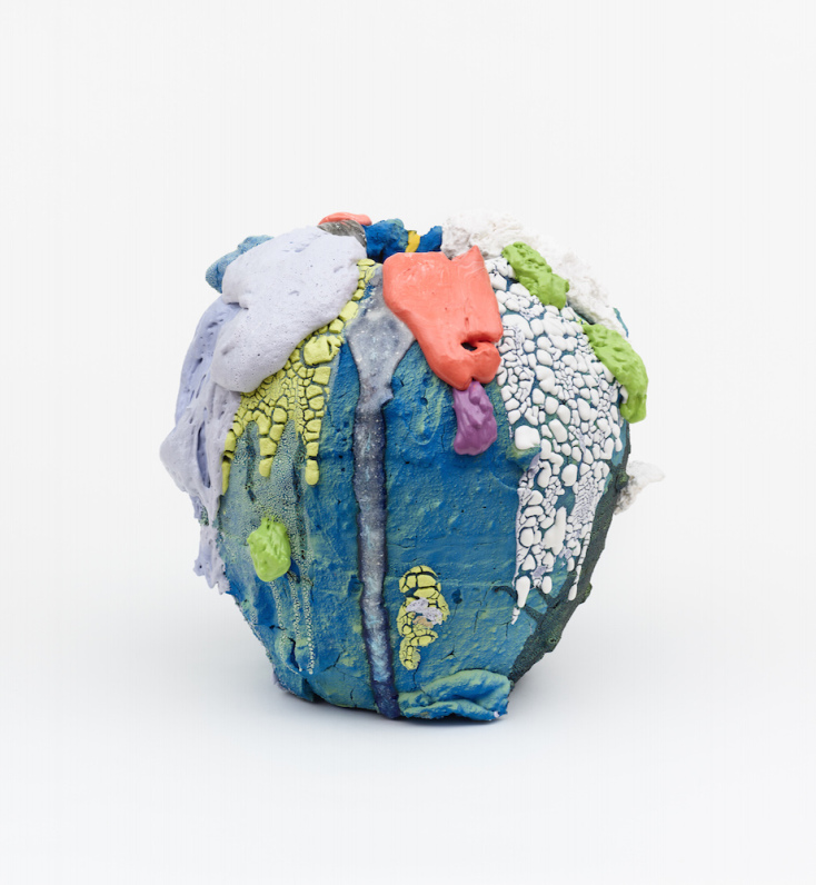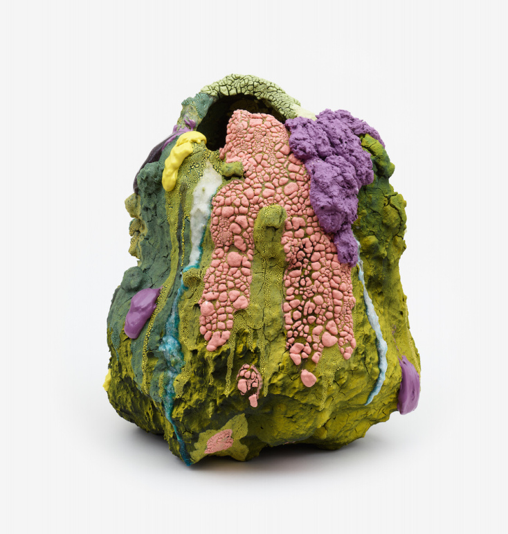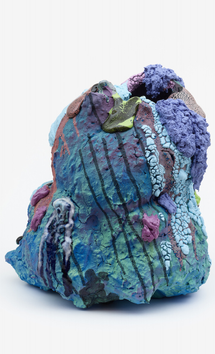 Ο τριανταεξάχρονος αμερικανός γλύπτης και κεραμίστας ποτέ δεν έκρυψε από πού αντλεί τη θεματολογία του. Οι γλυπτικές αναπαραστάσεις του παραπέμπουν σε μορφές φυσικών φαινομένων: Βολιβιανός Αμαζόνιος, τροπικά δάση στα νησιά Γκαλαπάγκος, ηφαιστειακές εκρήξεις στη Νικαράγουα ή φλεγόμενοι κρατήρες που φιλοδωρούν με μούλτι κάλορ λάβα πρόποδες βουνών στη Ρουάντα. Γλυπτά εξωτικά, ασυνήθιστα, χειροποιήματα που παραπέμπουν στον Franz West και τον De Kooning, γιατί όχι ακόμα και στη Niki de Saint Phalle. Άψυχα παιχνίδια ή μήπως έμψυχα που γύρω από το φριζαρισμένο περίβλημά τους κρύβουν αστρικές πολύχρωμες ψυχές στον πάγο;