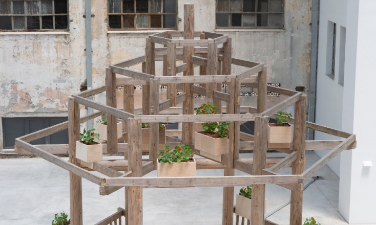 Στην πρόσοψη του κτιρίου, λοιπόν, μας υποδέχεται το έργο του Νίκου Ναυρίδη, ενώ εκτός του Καπνεργοστασίου αναπτύσσονται οι δύο πρώτες νέες αναθέσεις: ο Brendan Fernandes αναφέρεται στην ανθρώπινη ανάγκη για επικοινωνία μέσω της περφόρμανς του, ενώ η Χρυσάνθη Κουμιανάκη ενεργοποιεί την ευρύτερη περιοχή και τον Λόφο του Κολωνού.