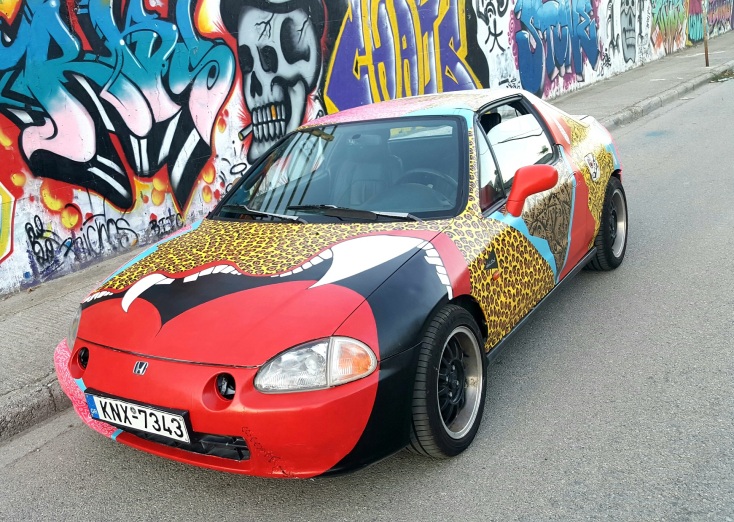 Ο εικαστικός Γιώργος Τζινούδης και η γλύπτρια Σοφία Πιπερίδου μεταμόρφωσαν σε pop έργο τέχνης ένα Honda del Sol του ΄97