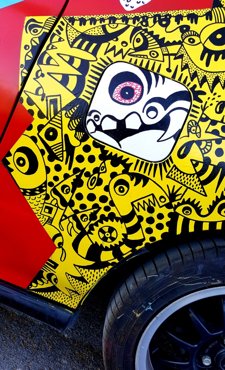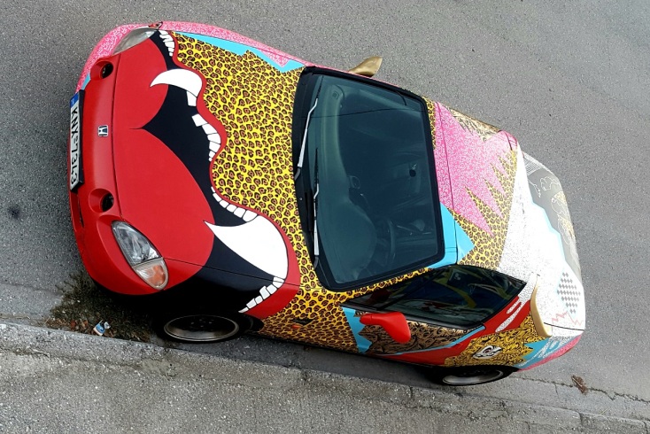 Ένα απίστευτο έργο τέχνης κυκλοφορεί στους ελληνικούς δρόμους. Είναι το αποτέλεσμα μιας τρελής συνεργασίας δύο εικαστικών, του ζωγράφου Γιώργου Τζινούδη και της γλύπτριας Σοφίας Πιπερίδου. Τόσο πρωτότυπο, τόσο ποπ, τόσο εξωφρενικό. Μας έφτιαξε τη μέρα και μας πήρε τη καρδιά. Κυριολεκτικά!