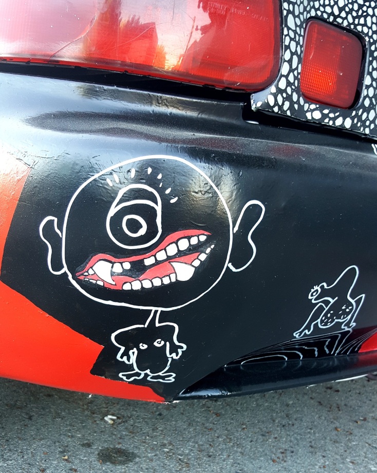 «Παρδαλό ε; Honda del Sol του ΄97 δεν έχουν μείνει πολλά. Ήταν πράσινο όταν ήρθε στα χέρια μου, είχε τόσα προβλήματα που δεν περπατούσε καν. Όταν λύσαμε το τεχνικό κομμάτι και αναστήσαμε τα περισσότερα από τα 160 άλογά του, κάτι συνέχισε να μας ενοχλεί, πολλές γρατζουνιές, βαθουλώματα, μπαλώματα... Φυσικά πάντα έλεγα και λέω, λαμαρίνες είναι δε βαριέσαι. Όταν όμως γνώρισα τον Γιώργο, δεν είχε την ίδιa γνώμη. Όλα ξεκίνησαν από μια σκακιστική κόντρα. Η ρεβάνς είναι μια λεξη που είπαμε πολλές φορές και οι δύο. Μια μέρα λοιπόν βάλαμε τη σκακιέρα πάνω στο ποδήλατο, την επόμενη σε ένα παγκάκι και την άλλη πάνω στο πορτμπαγκάζ του αυτοκινήτου, αυτή τη φορά τη ζωγραφίσαμε, ώστε να είναι διαθέσιμη ανά πάσα ώρα και στιγμή, αλλα και για να καλυφθούν κάποιες γρατζουνιές. Κάπως έτσι μας ήρθε η ιδέα να καμουφλάρουμε και τις υπόλοιπες “ζημιές”. Έτσι καθώς εγώ έκανα τη “βρώμικη” δουλειά, ο Γιωργος άρχισε να έχει παραισθήσεις, έβλεπε τα μπαλώματα για στόματα, τα βαθουλώματα για ρουθούνια και μάτια, τις γρατζουνιές για λογιών ευκαιρίες για σχέδια, θα τον είχαν πειράξει οι αναθυμιάσειςτου σπρέι, δεν εξηγείται αλλιώς. Μου τα έδειχνε ενθουσιασμένος, «νάτο δεν το βλέπεις», μου έλεγε. Σιγά-σιγά άρχισε να μου αρέσει η ιδέα, μόνο που εγώ έβλεπα άλλα πράγματα. Την ίδια μέρα πήραμε μπογιές, το βάλαμε στο γκαράζ και ξεκίνησε το πάρτι. Πάρτι, δεν το λες και πάρτι, διαφωνήσαμε για τα πάντα, μέχρι και για το κείμενο που γράφω τώρα θα διαφωνήσει. Κομμάτι κομμάτι, όμως, τη βρίσκαμε τη λύση. Όσο οι ενήλικοι έλεγαν «τσίρκο το καταντήσατε το αυτοκίνητο», εμείς το βαφτίσαμε “Tσιρcar”. Κομμάτι κομμάτι, μέρα με τη μέρα το τσίρκο έγινε car και το car, Τσιρcar... Τουλάχιστον αρέσει στα παιδιά. Ένα μάλιστα είπε: “Ωωω… ένα αμάξι μακαρονάδα... τέτοιο θα πάρω όταν μεγαλώσω».