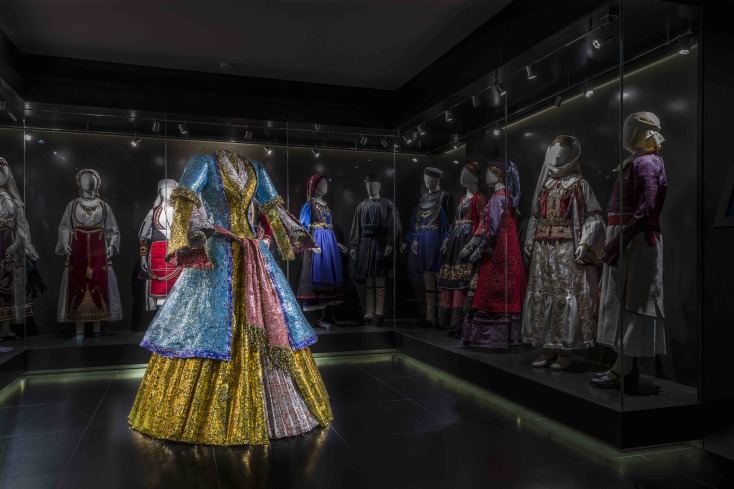Η κυρία Βικτωρία Καρέλια κατάφερε να εντοπίσει τα κομμάτια-εκθέματα που έντυναν τους Έλληνες, ταξιδεύοντας και αναζητώντας τα σε κάθε άκρη της χώρας μας. Ρούχα και σπάνια κομμάτια από τον 18ο και τον 19ο αιώνα, γυναικείες και ανδρικές στολές, αυθεντικές δημιουργίες και όχι μιμητική ρεπρονταξιόν φορεσιών και κοσμημάτων. Κομμάτια που επιτομούν την εθνική μας ιστορία και την ανατρέχουν ολιστικά καθιστώντας το μουσείο κάτι και σαν πανόραμα όλων όσων αφορούν το ενδυματολογικό στιλ. Το γλέντι, η γιορτή και ο καθημερινός μόχθος παρελαύνουν μπροστά μου σαν βιντεοκλίπ. Και στο βάθος, πέρα από τη ιδιαιτερότητα και τα έθιμα του κάθε τόπου, νά και η εθνική τοιχογραφία με αγώνες για την απελευθέρωση, όπως και η προσπάθεια ανόρθωσης του ελληνικού κράτους σε οικονομικό και κοινωνικό επίπεδο.