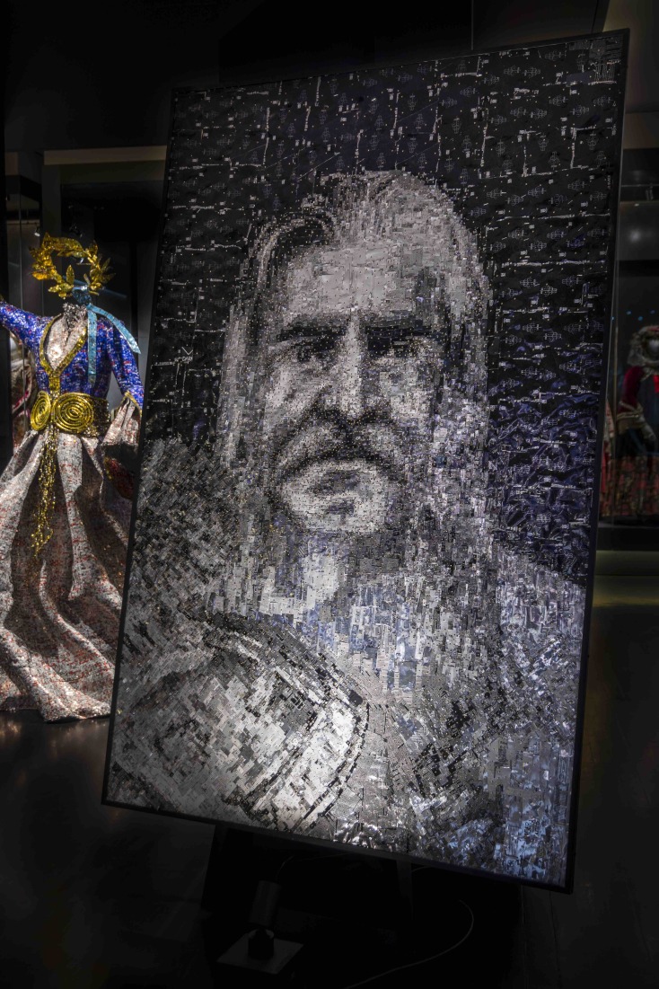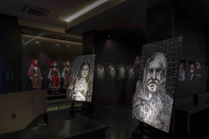 Τι γυρεύω εδώ όμως, για να περάσουμε και στο προκείμενο; Αυτό: δέχτηκα την πρόσκληση για να γνωρίσω όχι μόνο την εντυπωσιακή Συλλογή Παραδοσιακών Ενδυμασιών «Βικτωρία Γ. Καρέλια», αλλά και για να δω, αυτόπτης μάρτυρας, τα εκθέματα να συνομιλούν, να συγκατοικούν, να συνευρίσκονται και να συνυπάρχουν με τα έργα της έκθεσης «Ήρωες από μέταλλο» του εικαστικού Νίκου Φλώρου.