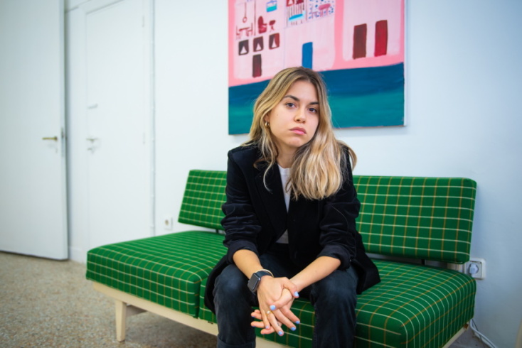 Οδός Πραξιτέλους. Στην καρδιά του κέντρου της Αθήνας. Μεσημεράκι βρίσκω τη Σταματία Δημητρακοπούλου, καλλιτεχνική διευθύντρια της Art Athina, με αφορμή την ετήσια μεγάλη εικαστική διοργάνωση «Art Athina Pop Up» που άνοιξε για το κοινό στις 12 Νοεμβρίου στο King George. Συστηνόμαστε και αμέσως μου προτείνει να μιλάμε στον ενικό. Στο δεύτερο όροφο μιας πολυκατοικίας με αίθριο εκ πρώτης «κρυμμένης» θα γίνει η συζήτησή μας. Το γραφείο ιδιαίτερα ευρύχωρο, πολύ φωτεινό με μοντέρνο design. Ό,τι πρέπει. Η ίδια μόλις 30 χρονών, εντυπωσιακά ήρεμη, φαίνεται να ξέρει τι κάνει και να ελέγχει την κατάσταση.