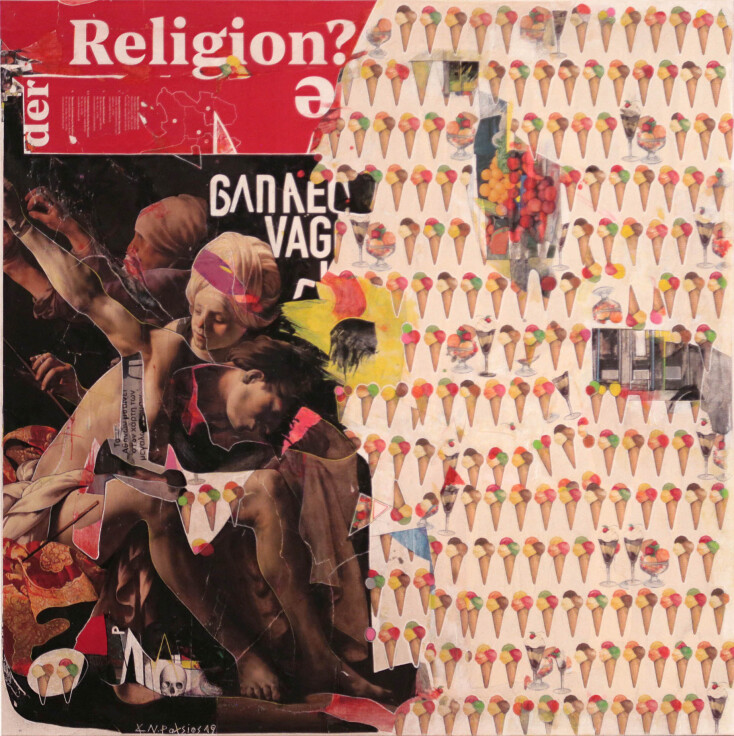 Παιγνιώδης όπως πάντα με το καλημέρα και από τον τίτλο. Αλλά και στοχαστικά γλυκόπικρα τα έργα σου. Η ποπ κουλτούρα και το κλασικό συγκατοικούν για άλλη μια φορά, κολάζ και ζωγραφική, πνεύμα και κατανάλωση, ήρωες που εναλλάσσονται με νέους (λες και τους γεννά μια κλωσσομηχανή παραγωγής) και το νέο που γίνεται παλιό χωρίς να το πάρει χαμπάρι. Πώς παρέρχεται η δόξα του καλλιτέχνη;